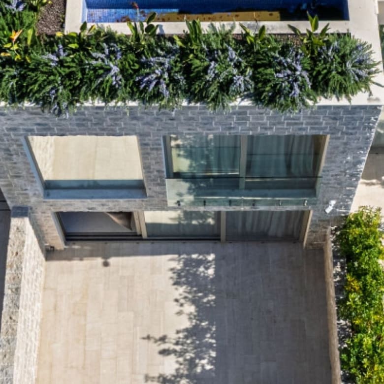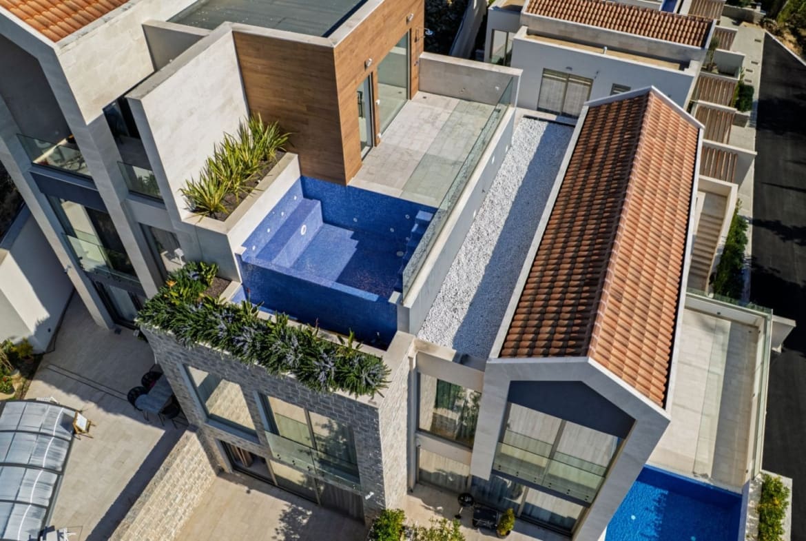 Das mehrstöckige Design bietet natürliche Privatsphäre zwischen Wohnbereichen, Schlafzimmern und exklusiven Dachterrassen, bei maximaler Meersicht von jeder Ebene.