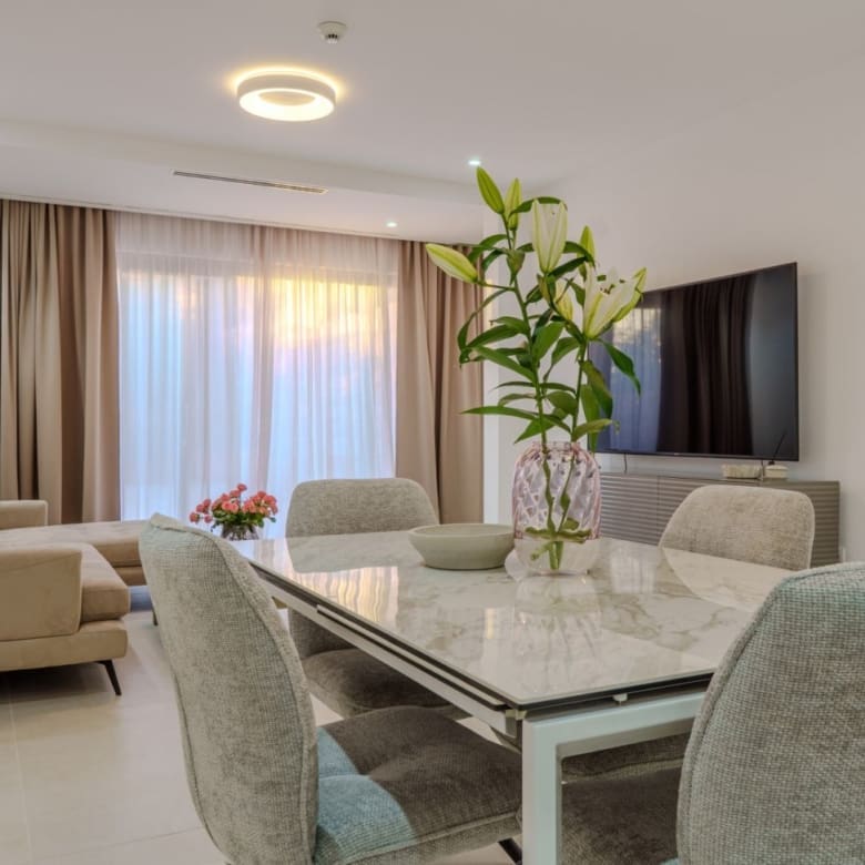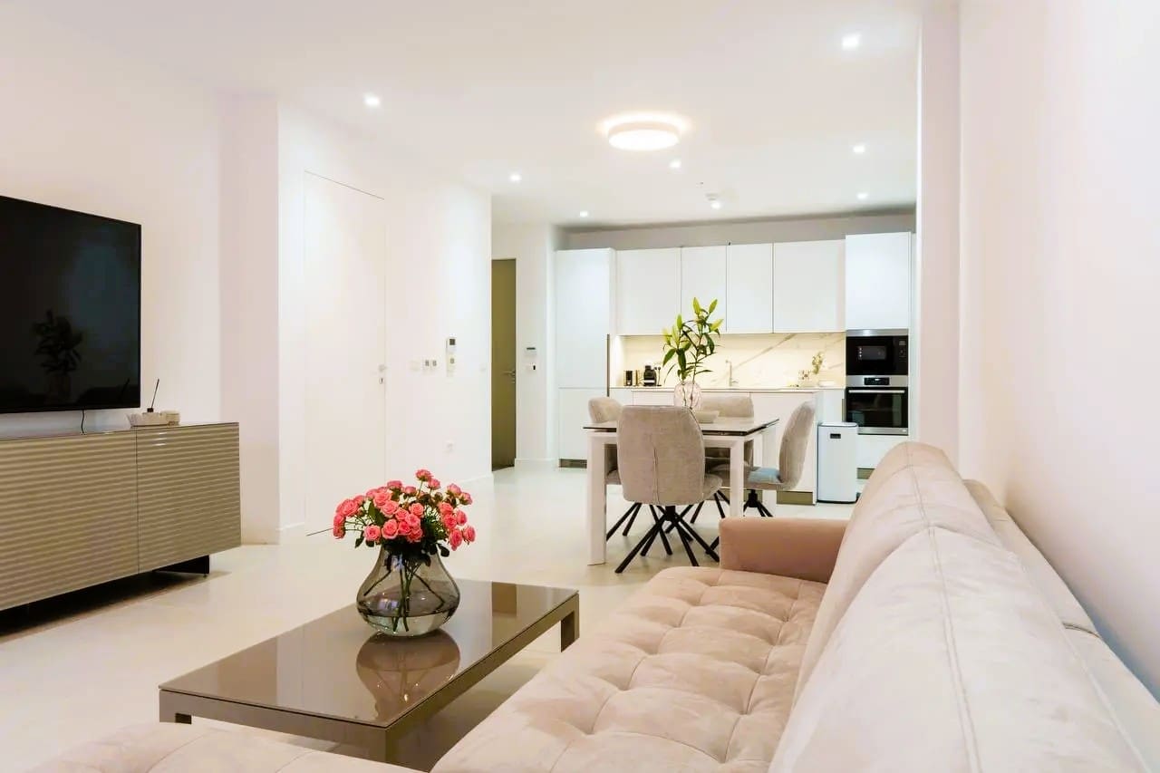 Was ist im Kaufpreis enthalten? Alle Luxusausstattungen (Villeroy & Boch Badezimmer, italienische Eichenböden, Daikin Klimaanlage, AEG Geräte), privater Pool mit Ausrüstung, Smart-Home-System, Tiefgaragenstellplätze für 2 Autos und 2 Jahre Gewährleistung. Möblierung optional für zusätzliche €60.000-€90.000.