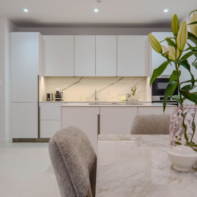 - Italienischer Marmor oder hochwertige Keramikoberflächen