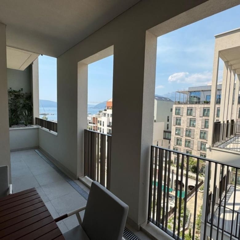 Terrasse: 14,62 m² große Terrasse mit Meerblick und Glasbrüstung für maximale Adriablicke Richtung Porto Montenegro Marina. Composite-Decking, integrierte LED-Beleuchtung und Vorbereitung für Outdoor-Küche. Platz für Esstisch (4-6 Personen) und Lounge-Möbel. Südausrichtung für ganztägige Sonne.