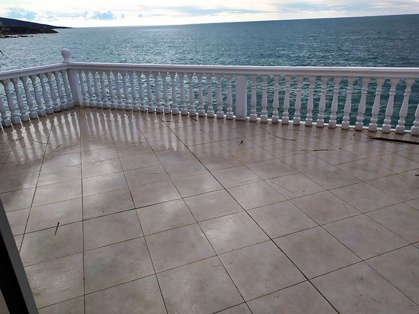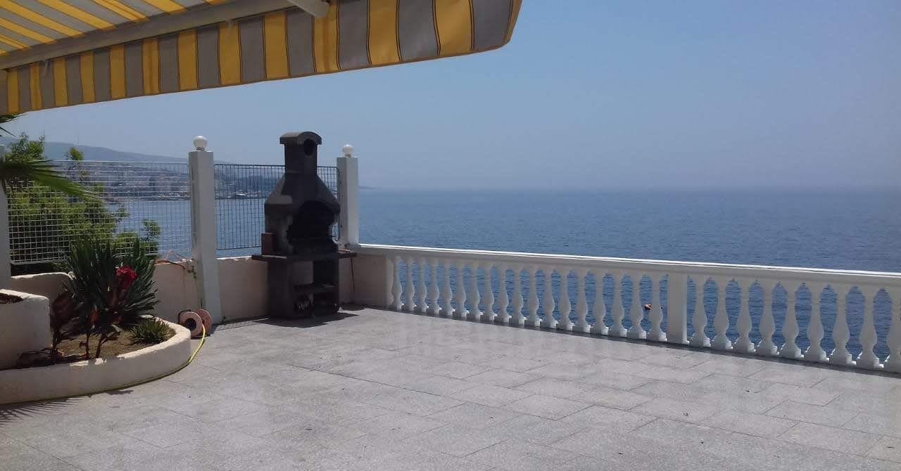 Auf der separaten “Erdgeschoss”-Ebene der Villa befindet sich eine große Küche mit Essbereich und eine große Terrasse (Gesamtfläche 105 m²) mit Grillmöglichkeit und Meerblick.