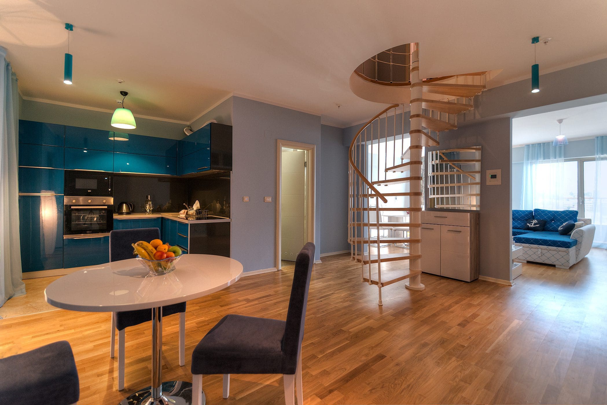 Ekskluzywny apartament na sprzedaż w Bečici, wnętrze wykonane według projektu designerskiego.