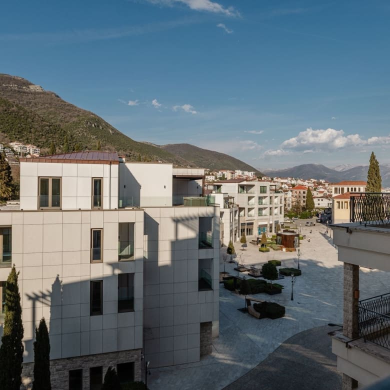 How far is this apartment from Dubrovnik and Tivat airports? Tivat International Airport is 17 kilometres away. Dubrovnik International Airport (Croatia) is 35 kilometres away. Both airports are reachable in under 35 minutes by car, making Portonovi one of the best-connected luxury residential addresses on the Adriatic south of Split.