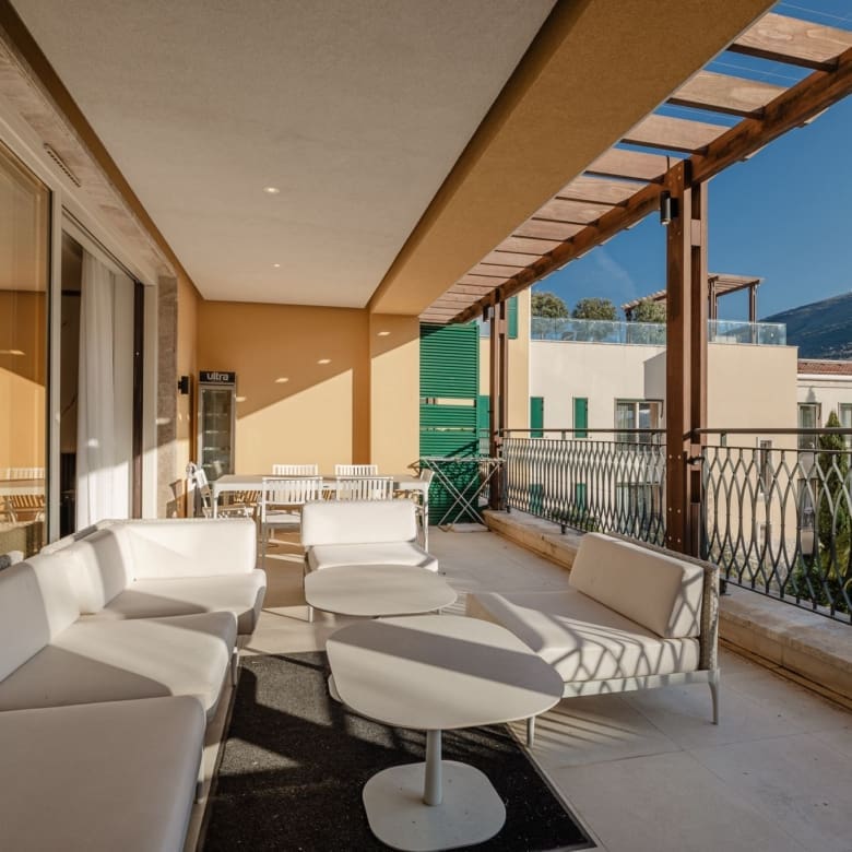 2 Bedroom Apartment Portonovi: In a resort where the standard of living is defined by the One&Only hotel beside you and the Chenot Espace SPA beneath you, what distinguishes one residence from another is space. This 2-bedroom apartment at Portonovi offers 171.6 m² in total — 142.2 m² of interior living area and a 29.4 m² sea-view terrace on the 3rd floor. Two bedrooms. Two bathrooms. A living room generous enough to entertain, a kitchen configured for daily use, and a terrace positioned directly above the Bay of Kotor entrance.