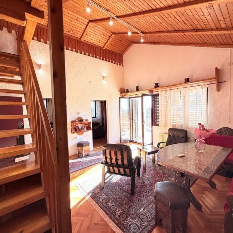 This house for sale in Bar is a fully legalized two-storey property with a total living area of 130 m², located on a 300 m² plot, approximately 500 meters from the sea. The property offers privacy, functionality, and strong investment potential.