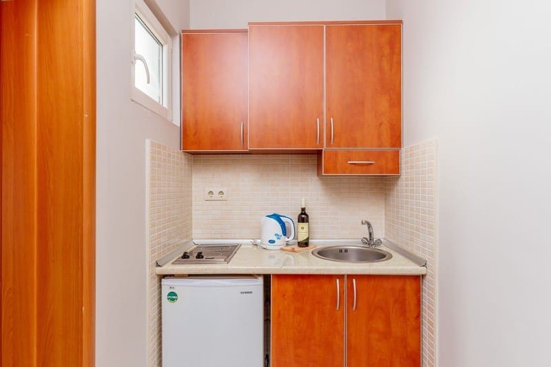 Bunlara ek olarak, yemek masalı bir mutfak bölmesi ile duş ve saç kurutma makinesi olan bir banyo bulunur.