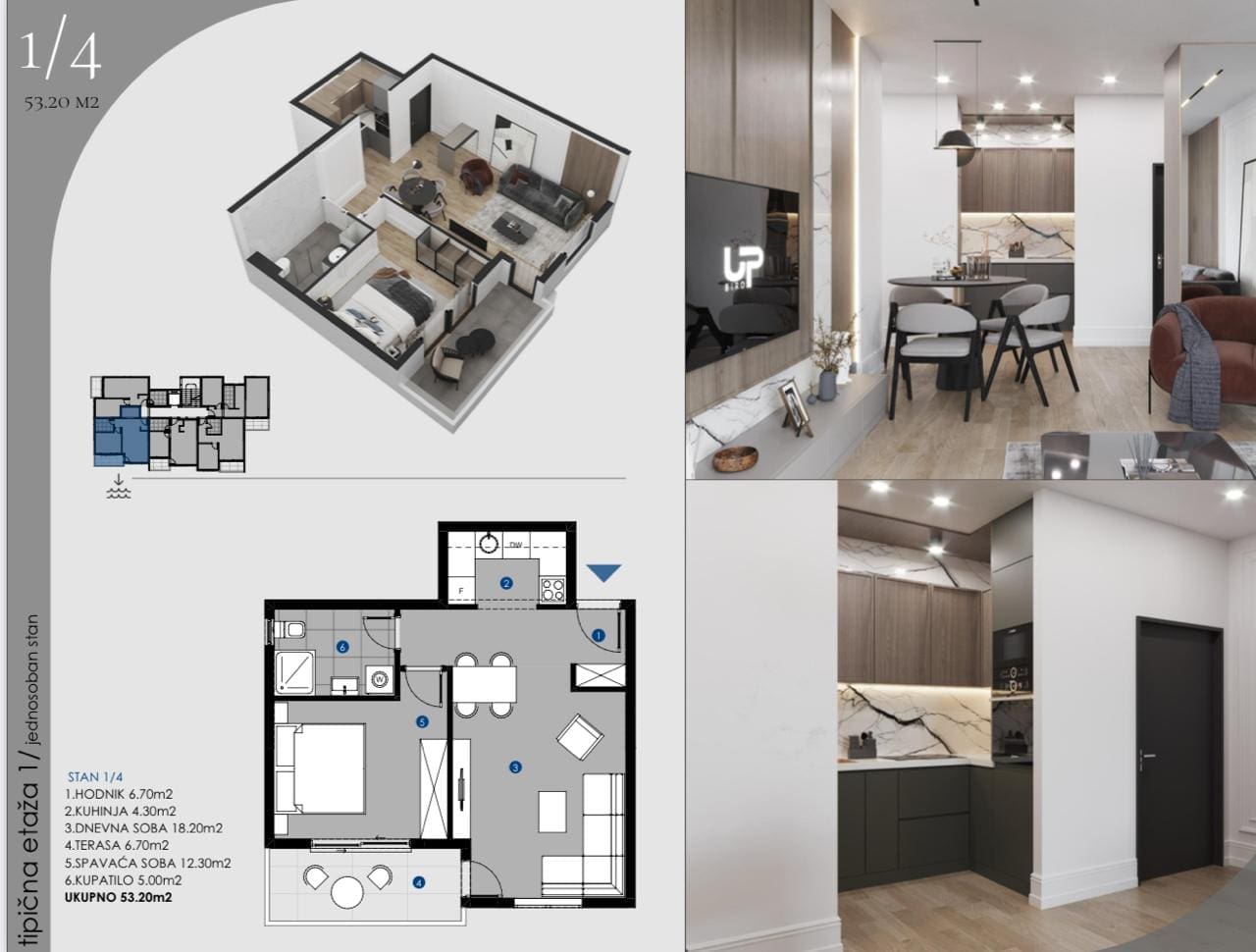 Ця сучасна квартира на продаж у Добрій Воді, Чорногорія пропонує ідеальне поєднання життя біля моря та розумних інвестицій. Розташована у новому житловому комплексі всього за 1100 метрів від пляжу, вона поєднує комфорт, зручність та відмінну вартість.