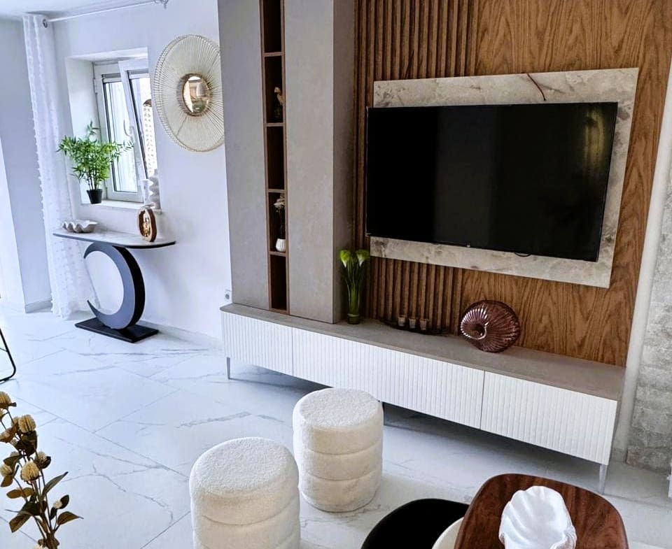 Цей Апартаменти в Прчані площею 110 м² мають продуманий дизайнерський ремонт, що створює витончені середземноморські житлові простори з функціональним плануванням: