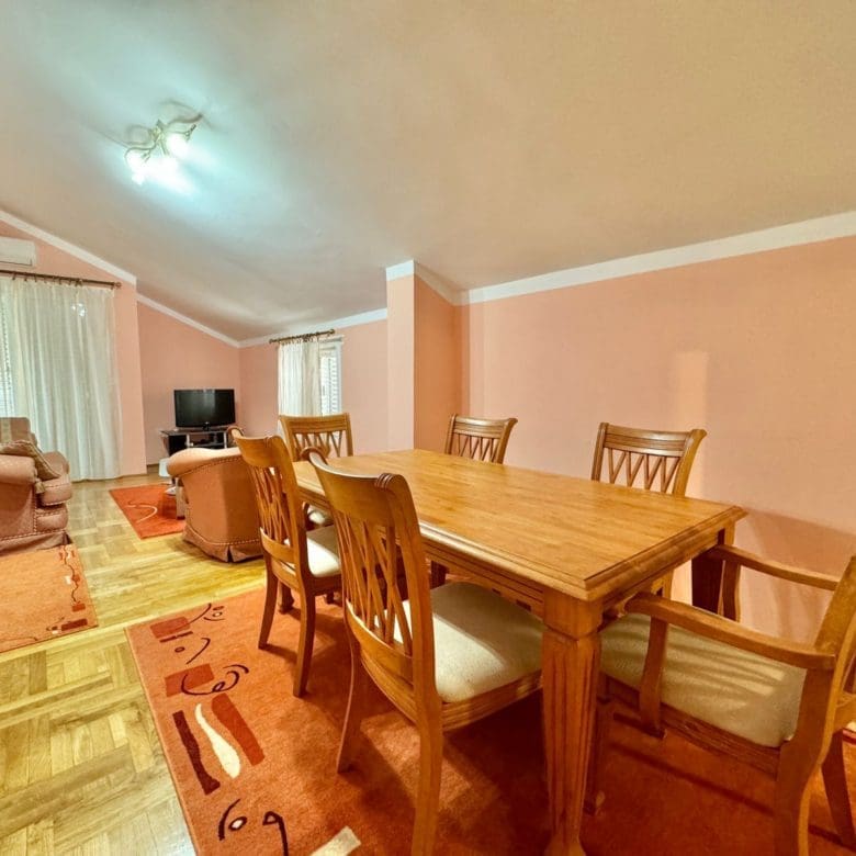 Ця добро облаштована резиденція має загальну площу 54 м², що розподілена на 50 м² житлового простору та комфортну терасу, ідеальну для насолоди середземноморським кліматом Чорногорії. Розташована на 6-му поверсі сучасного будинку з ліфтом, квартира забезпечує легкий доступ та приємний вид на околиці.